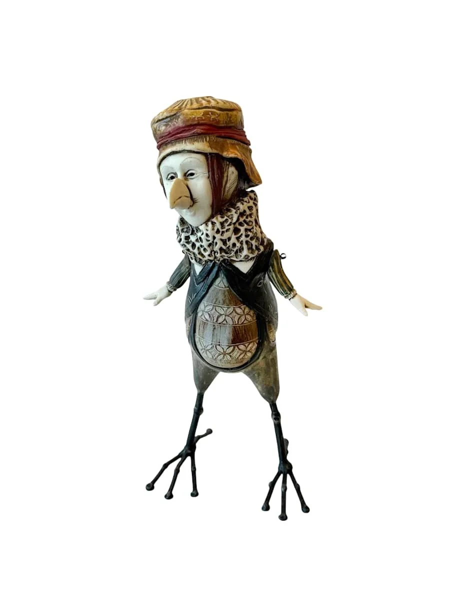 Robin and john Gumaelius are a unique husband and wife team of collaborating artists. Together they create articulated human and birdlike sculptures. They combine ceramic, steel and wood as they form highly inventive sculptures that are often comical or bizarre. Elements of children’s stories, religious icons, Medieval and Renaissance history, African skin decoration, and holy relics can be seen in their work.